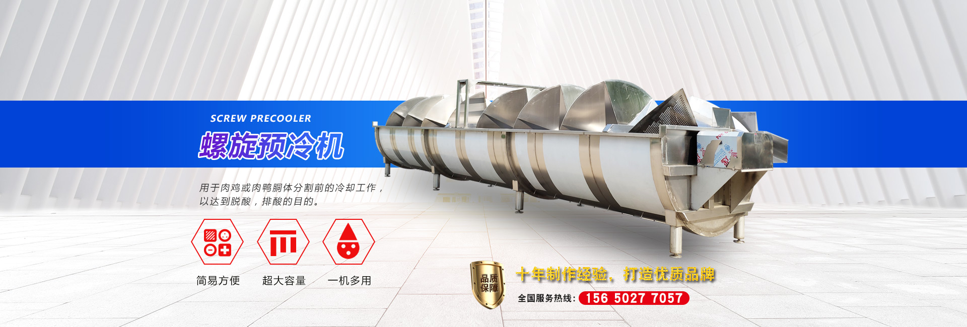 公司長期與國內(nèi)外屠宰加工企業(yè)合作,走引進(jìn)——消化——創(chuàng)新和自主研發(fā)相結(jié)合的道路,在國內(nèi)外同類產(chǎn)品的基礎(chǔ)上,不斷更新和改造。公司主要設(shè)備有:A字型立式脫毛機(jī)、臥式脫毛機(jī)、強(qiáng)力噴淋機(jī)、松毛機(jī)、浸燙池、螺旋預(yù)冷機(jī)、禽籠清洗機(jī)、電暈機(jī)、兔扯皮機(jī)、兔割前爪/后爪機(jī)、剝胗機(jī)、自動洗鉤機(jī)、螺旋燙爪機(jī)、雞爪脫皮機(jī)、分割輸送帶等屠宰用設(shè)備。其中,公司獨(dú)力發(fā)明生產(chǎn)設(shè)計(jì)的“電動調(diào)節(jié)脫毛機(jī)”及“自動控水控溫浸燙池”順利通過知識產(chǎn)權(quán)局的實(shí)質(zhì)性審查。公司所生產(chǎn)的設(shè)備 可與國外同類產(chǎn)品配套使用,設(shè)備遠(yuǎn)銷阿爾及利亞、澳大利亞等中東、非州等并建立了長期穩(wěn)定的合作關(guān)系。